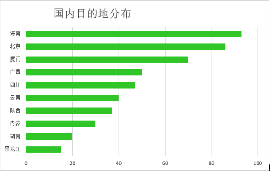 从用户所在城市排名来看,上海、深圳、北京、广州定制旅游接受程度最高,经济实力相对发达且对生活品质有很高的要求,通过互联网选择定制旅游的热情也最高。此外,杭州、宁波、重庆等城市也出现大量定制旅游的需求,,消费能力直追一线城市。